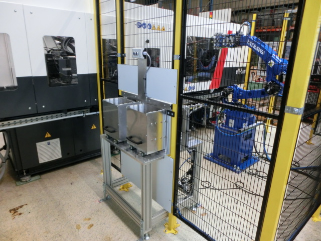 Projektbilder Branche: Elektrotechnik Aufgabenstellung: Entwicklung eines Automationskonzeptes zur Herstellung einer Funktionsbaugruppe, bestehend aus einem Kunststoffspritzgussteil, in das fünf Feinblechleiter umspritzt werden. Ausgangslage: Die Feinblechleiter, ausgeführt als Biege-Stanzteile, sind aufgrund ihrer Eigenschaften nicht aus Schüttgut zuführbar. Zusätzlich ist ein 100%iger Hochspannungstest der umspritzen Leiter erforderlich. Die Fertigung erfolgt auf einer Spritzgießmaschine mit 4-fach-Werkzeug bei einem maximalen Spritzzyklus […]