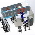 Entwicklung eines Automationskonzeptes zur Herstellung eines Klemmkontaktes in der Elektrotechnik. Das Bauteil besteht aus zwei Einzelkontakten, die spiegelbildlich angeordnet und durch einen Kunststoffkörper miteinander verbunden sind. Die fertig montierte Baugruppe soll anschließend als Tape-and-Reel-Verpackung in Blistergurt ausgeliefert werden.
