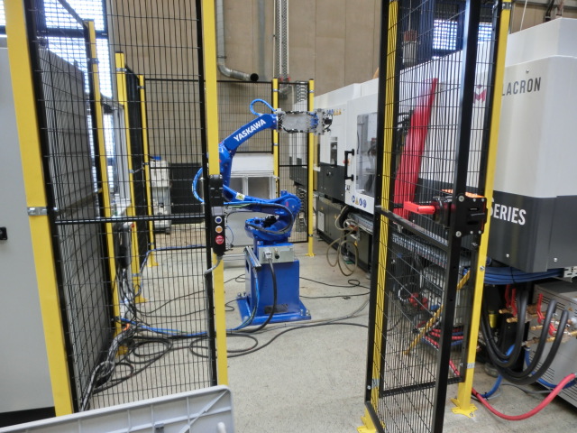 Zur Umsetzung wurde bereits im Rahmen des Produktdesigns an einer prozessgerechten Optimierung mitgewirkt. Dabei wurden insbesondere Aspekte wie Handling, Logistik, Montage, Fertigungs- und Herstellverfahren sowie Automation berücksichtigt. Die Herstellung der Einzelkontakte erfolgt mit einer Servopresse, einem Biege-Stanzwerkzeug und einer gesteuerten Haspel direkt an der Spritzgießmaschine. Anschließend werden die Einzelkontakte automatisiert durch einen Yaskawa-Motoman SG400 Scara-Roboter aus dem Biege-Stanzwerkzeug entnommen und lageorientiert in eine 8 x 2-fach Übergabestation abgelegt. Ein 6-Achs-Roboter des Typs GP12 übernimmt danach die acht Kontaktpaare und bestückt das Spritzgusswerkzeug.